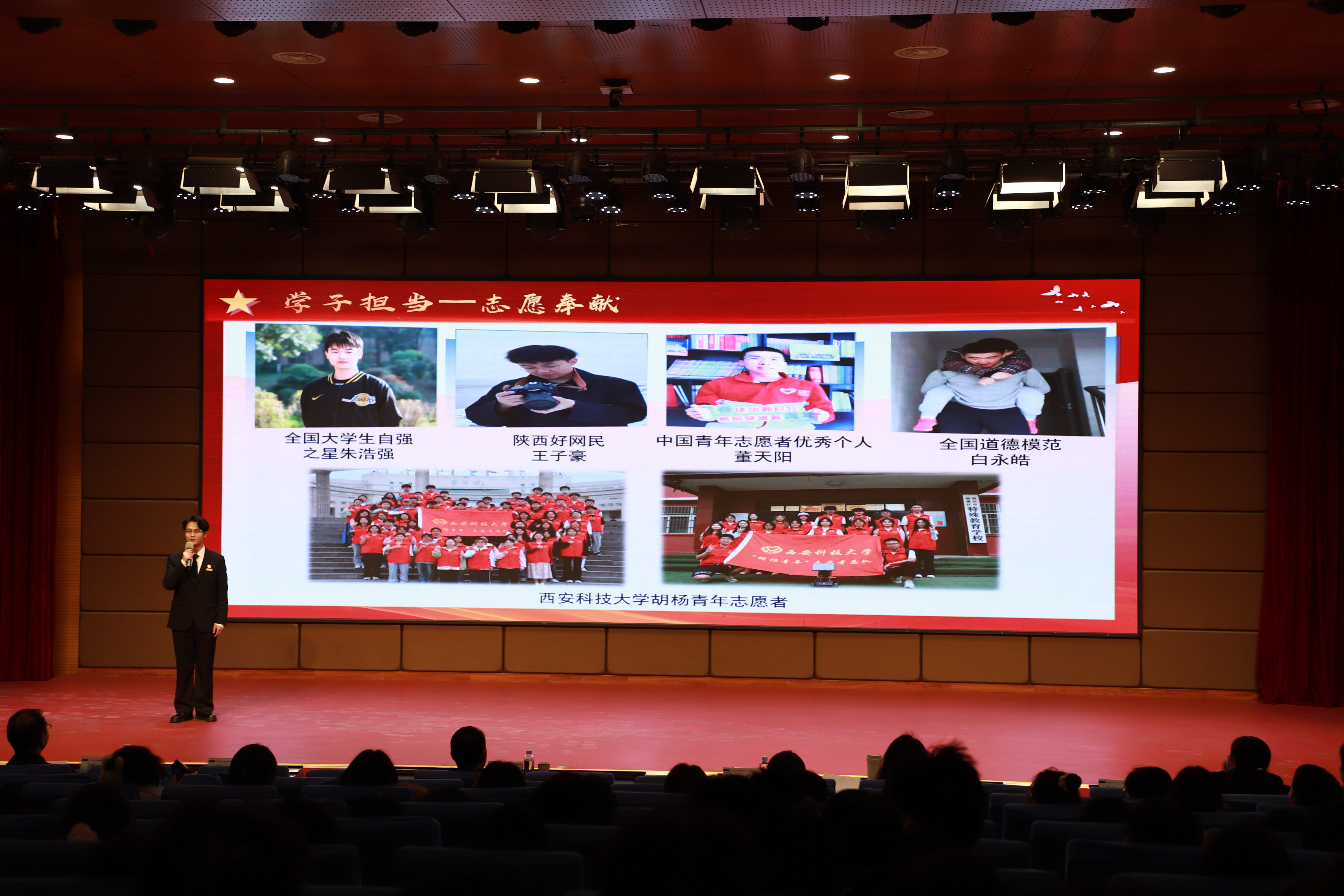 张建华以《篓筐载文脉,风骨续华章》为题,以真挚饱满的情感、生动鲜活的讲述,带领现场观众重温烽火岁月中的文脉守护。他娓娓道来徐文昇老师与504块地质标本的故事:抗战时期,这批跨越38个国家的“全球地质百科”随校西迁,历经辗转不离不弃;“文革”动乱中,徐老师用篓筐背着标本翻山越岭,乞讨果腹也要守护学术珍宝,临终前更执意葬于骊山,只为守望毕生牵挂的“石头宝贝”。一段段感人至深的校史片段,让现场观众深刻感悟到“祖国利益高于一切”校训背后的责任与担当。
